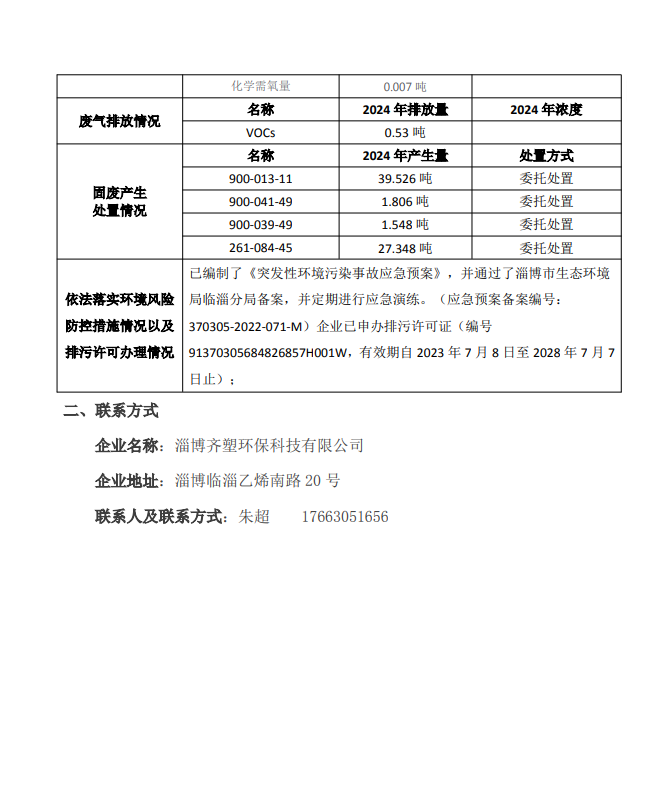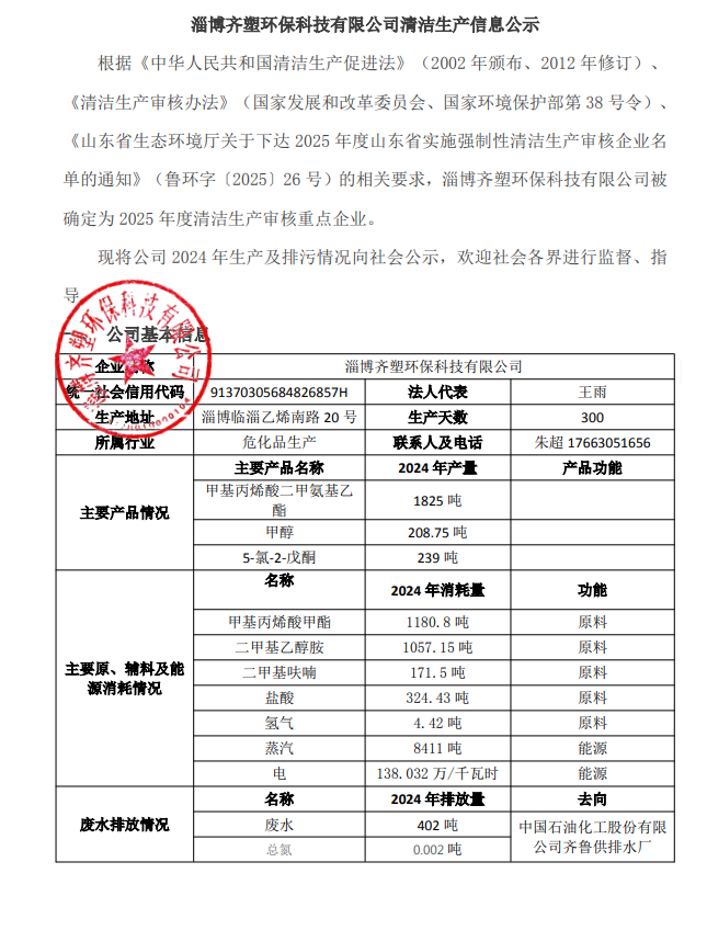 淄博齊塑環(huán)保科技有限公司清潔生產(chǎn)信息公示